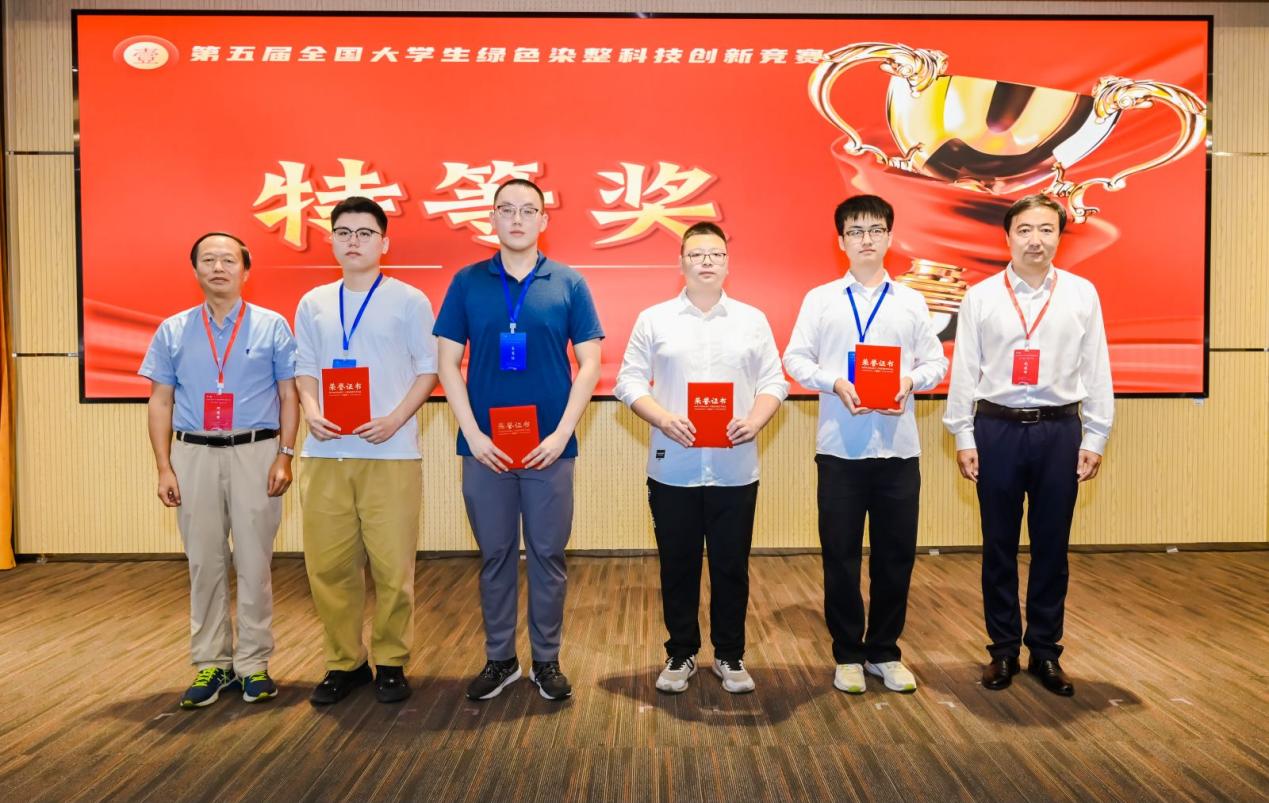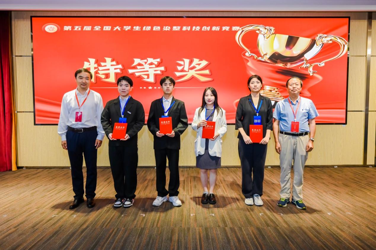我校“光耀净界——功能化纤维膜构筑2D MOF界面协同光芬顿高效降解印染废水”荣获研究生组特等奖、“绿基护盾——新型生物基阻燃剂在涤纶织物上的构建”项目荣获本科生组特等奖,“化波为热—一种环保高效吸波材料的研发与运用”等2个项目荣获本科生组一等奖。